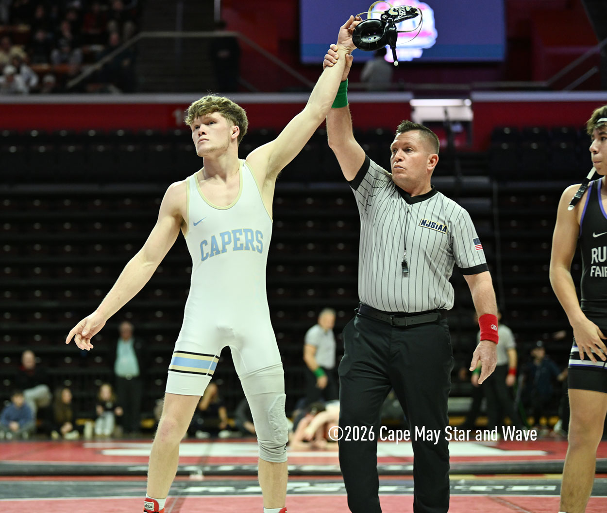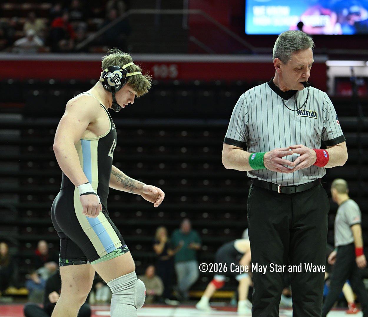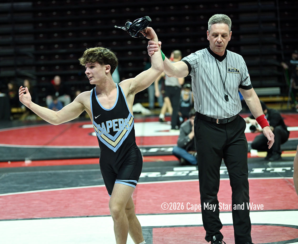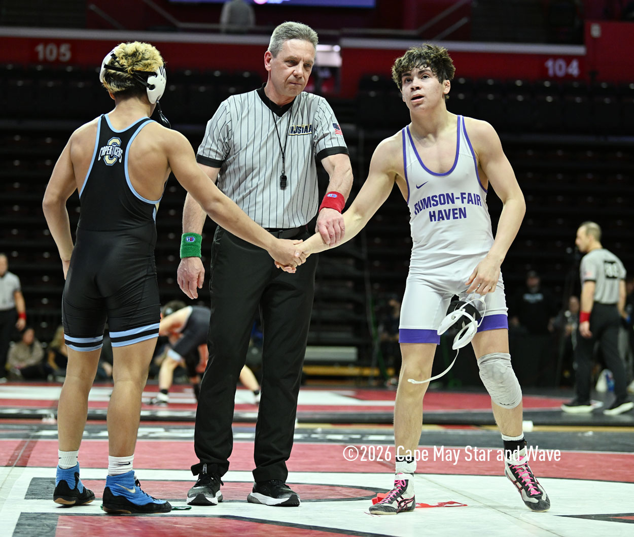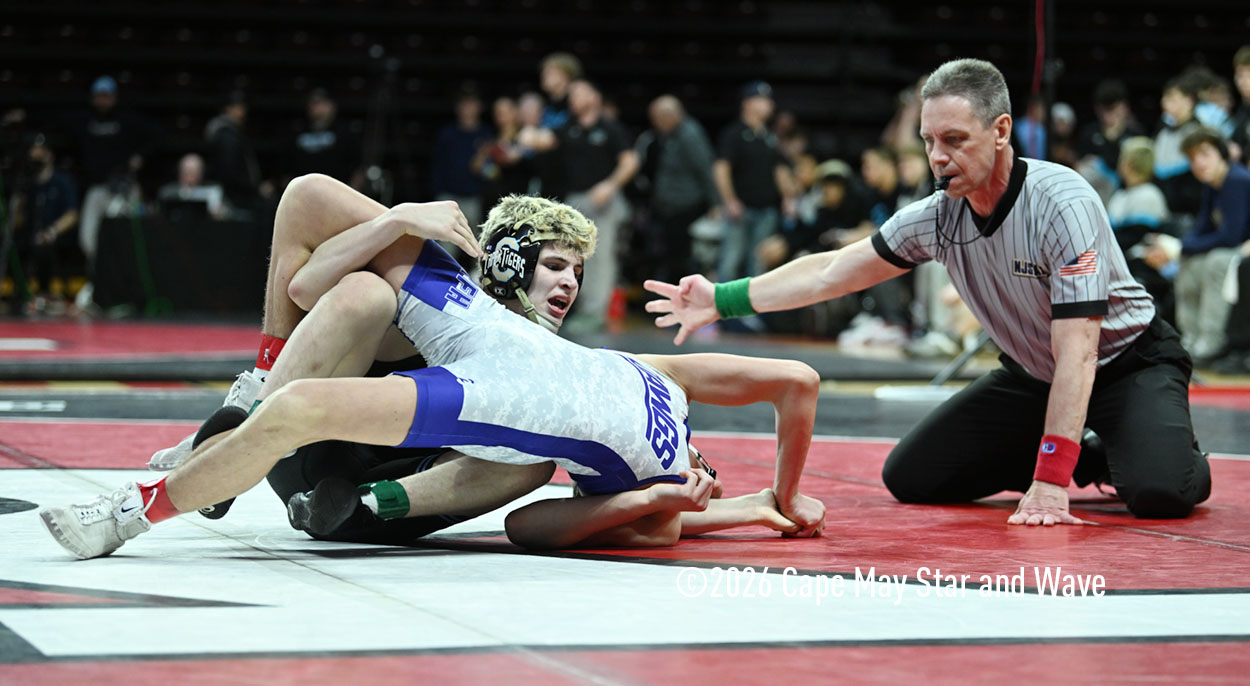 The 126-pounder from Lower Cape May Regional High School was the last Caper Tiger to wrestle in their team state championship match against Rumson-Fair Haven High School on the floor at Jersey Mike’s Arena.
