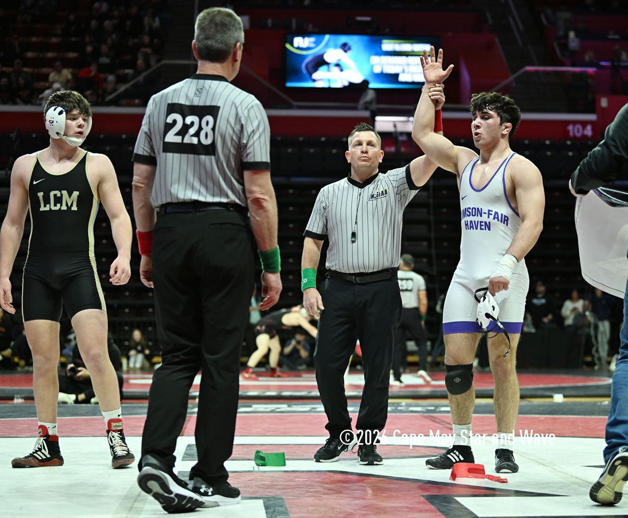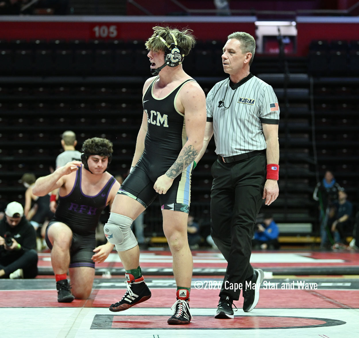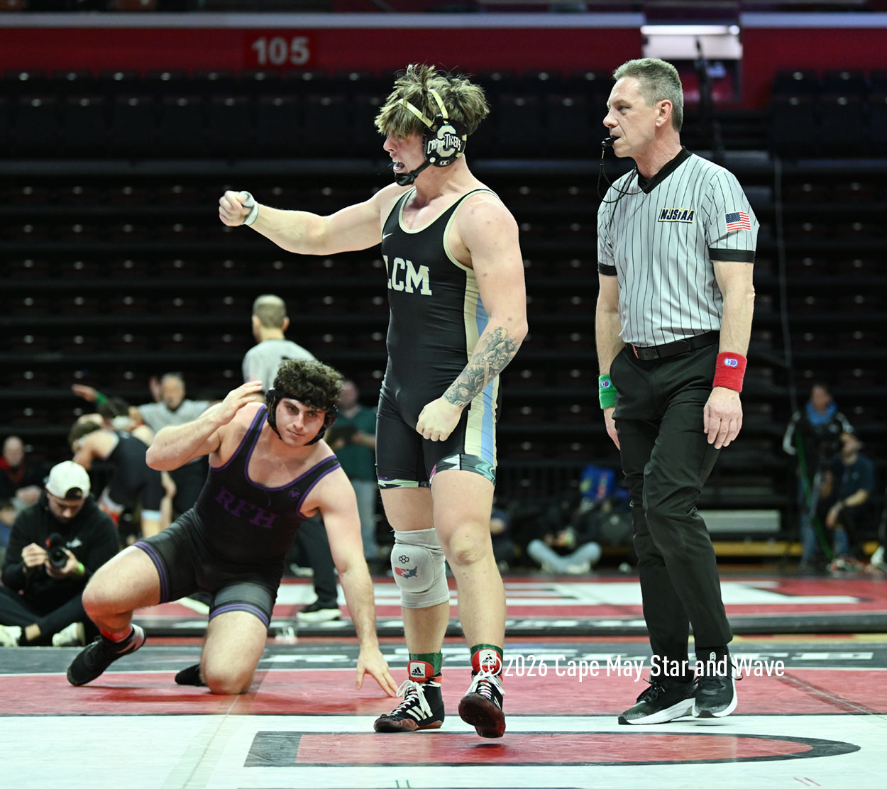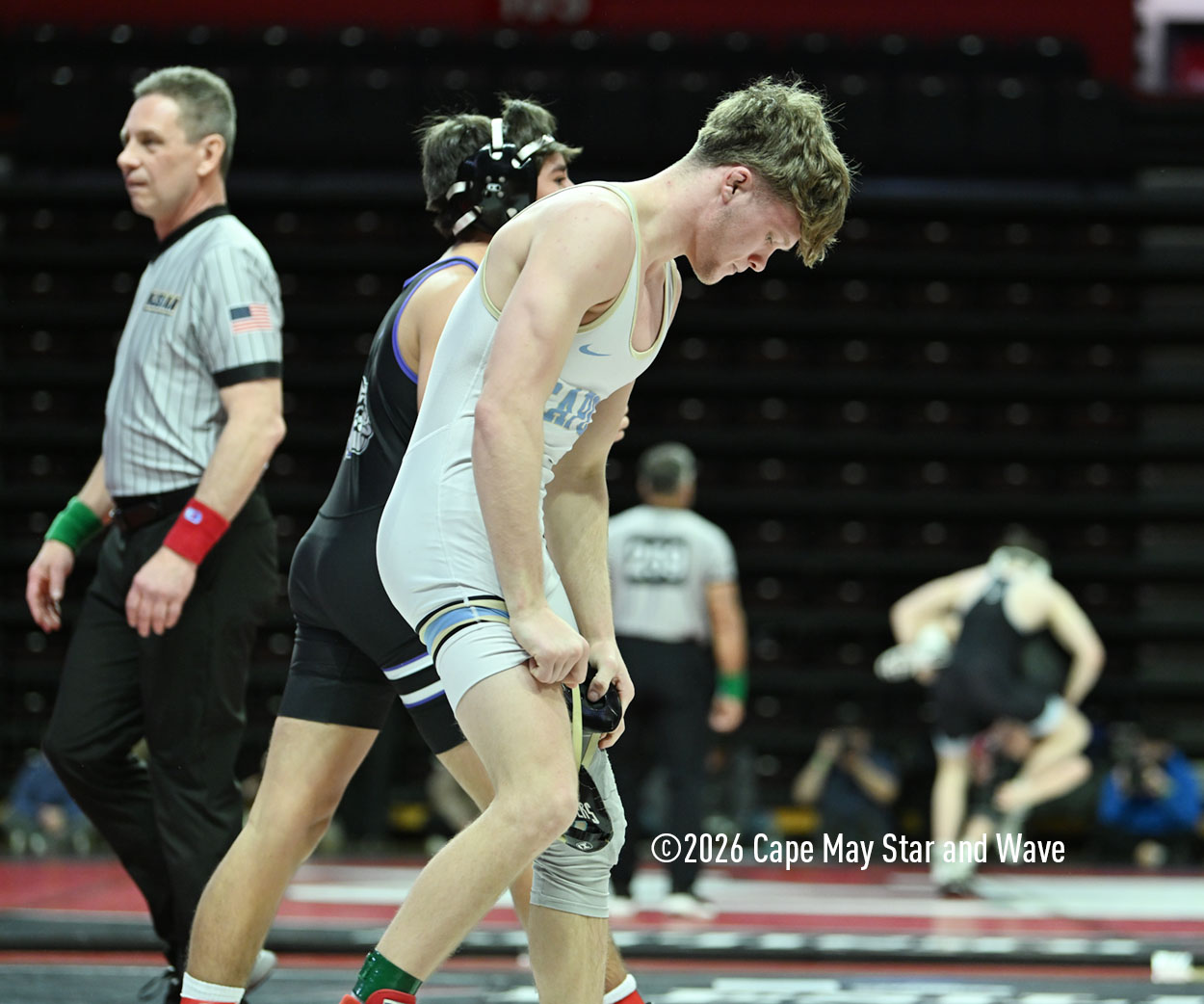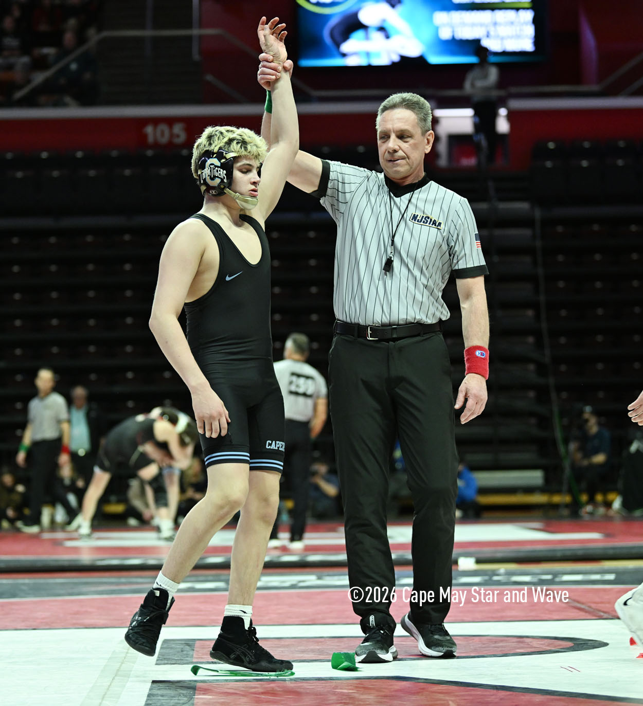 The 126-pounder from Lower Cape May Regional High School was the last Caper Tiger to wrestle in their team state championship match against Rumson-Fair Haven High School on the floor at Jersey Mike’s Arena.