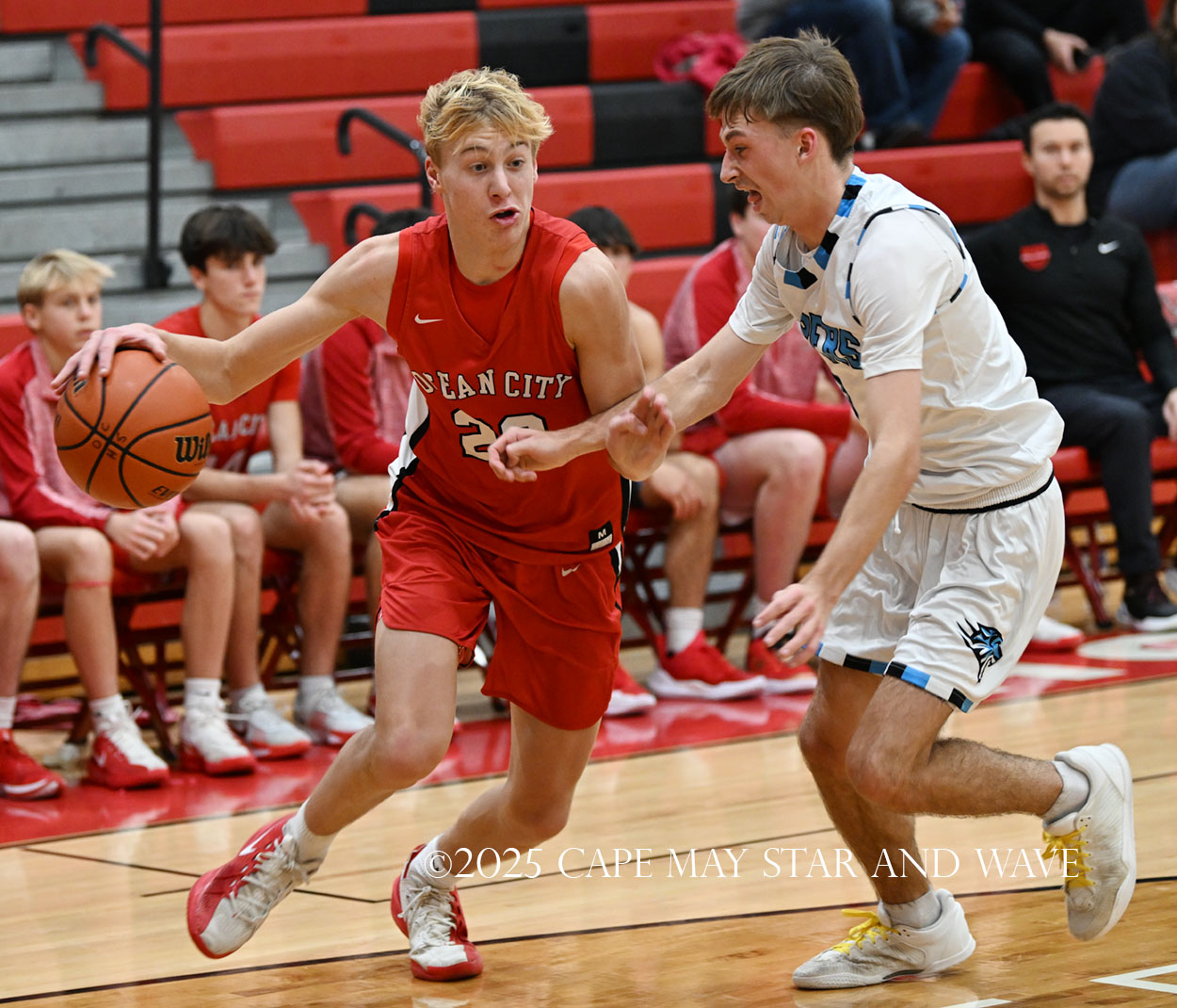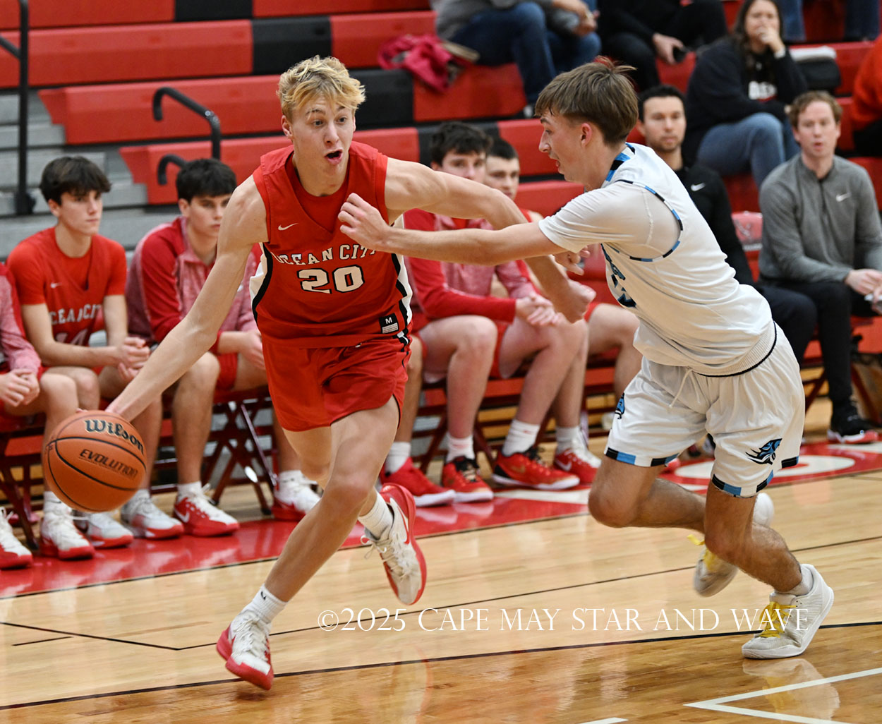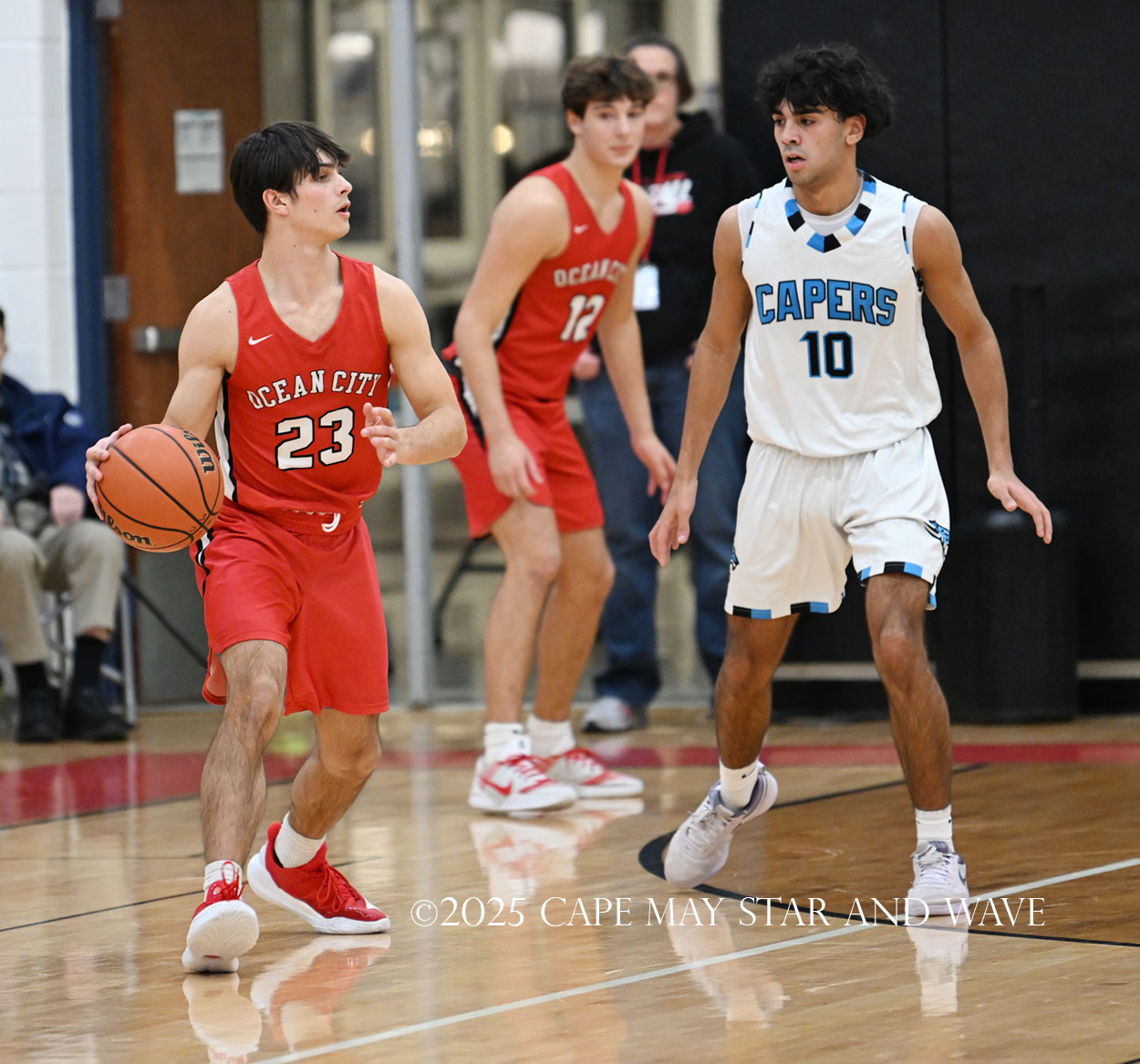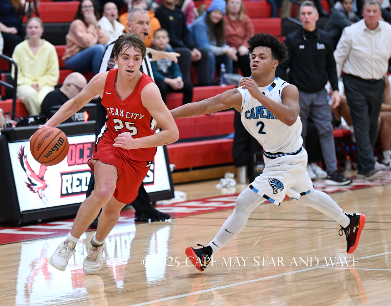 Cole Sederland and Gavin Ridgway both hit three big three-pointers to keep the pressure on Ocean City as the team’s primary long-range threats.