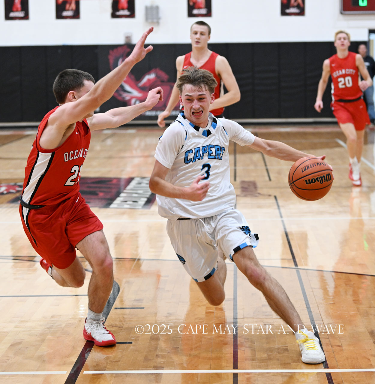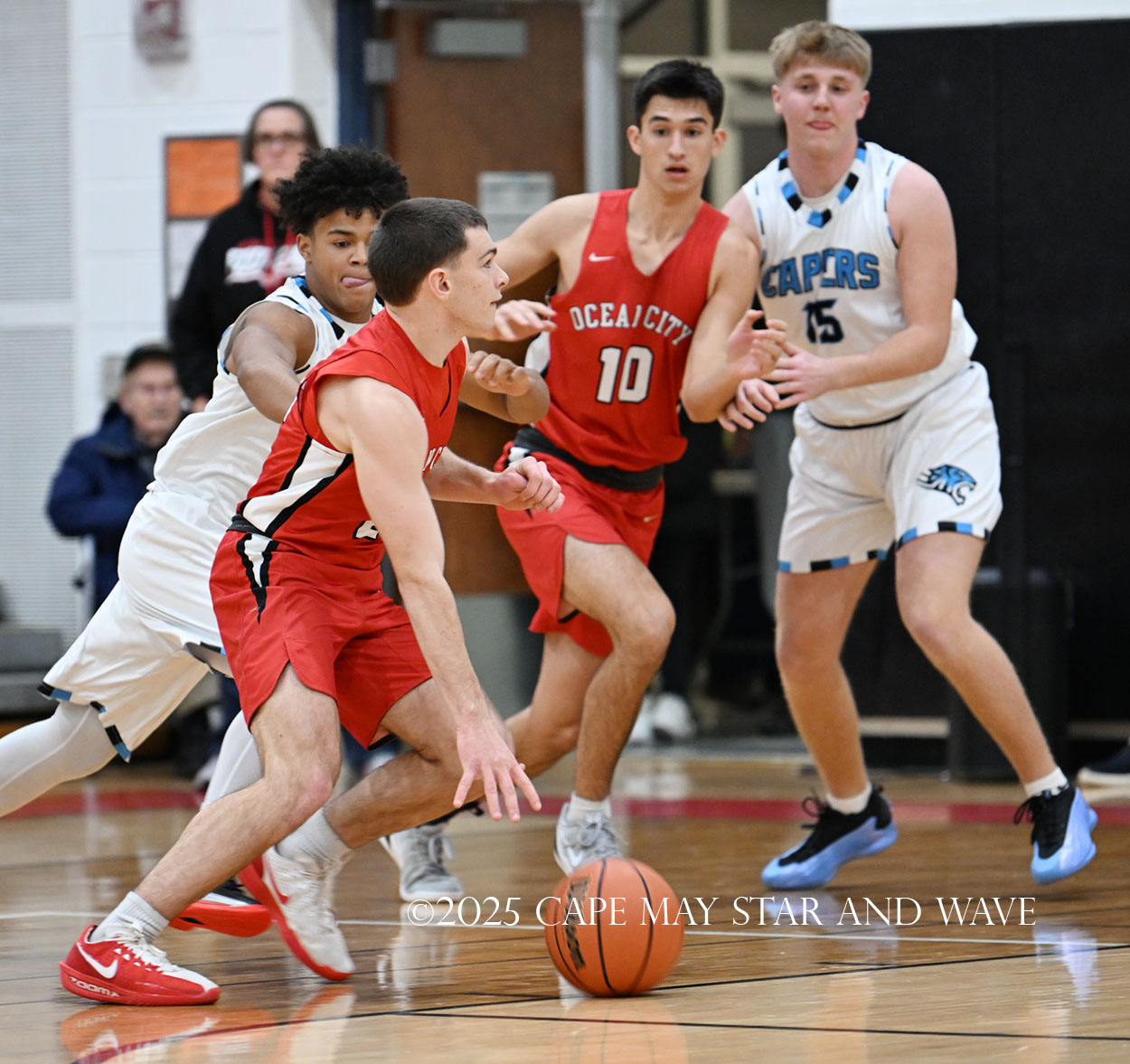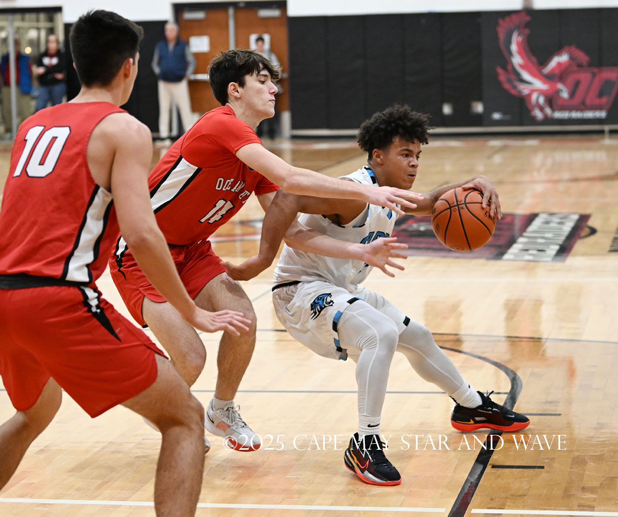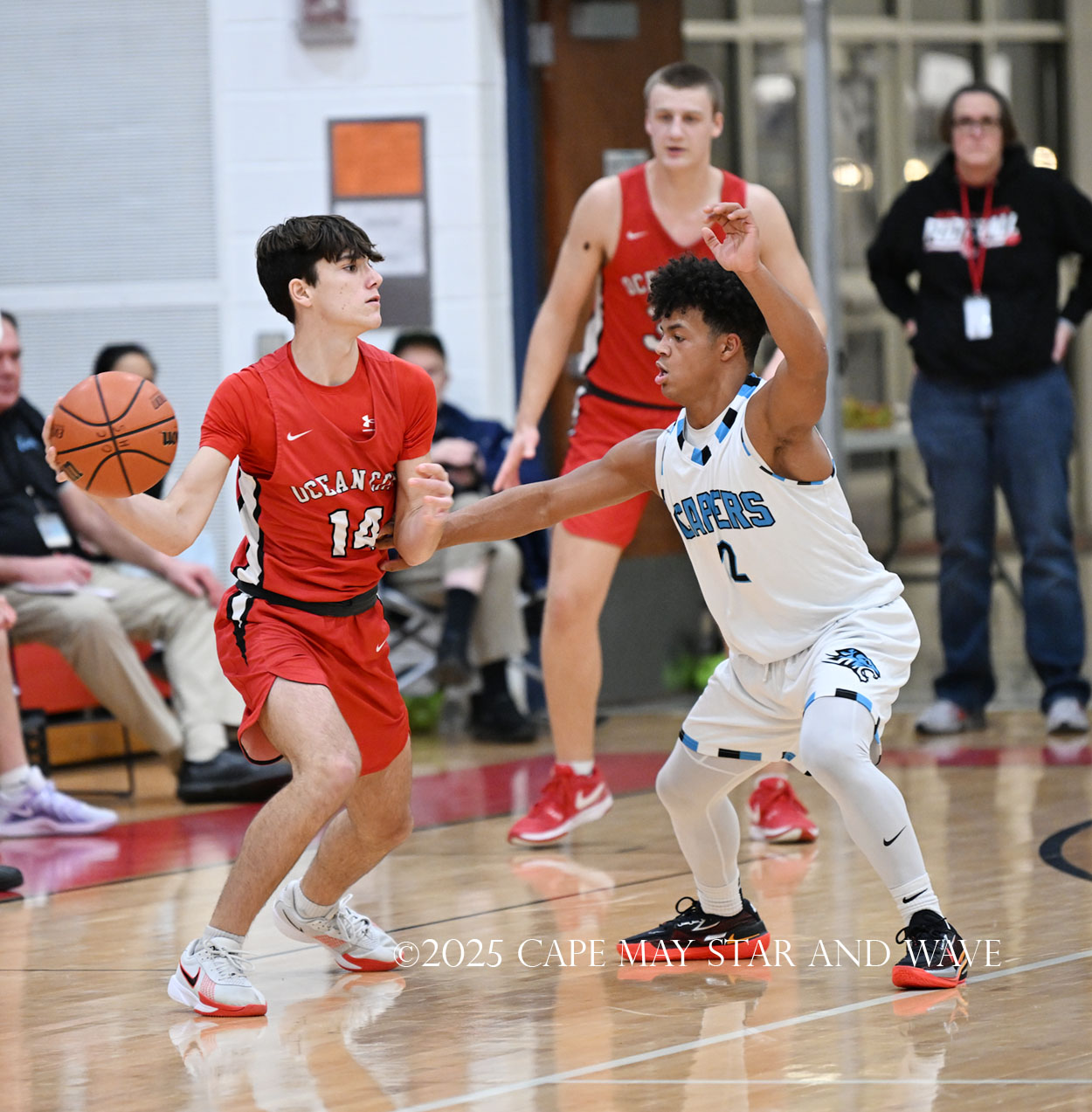 Cole Sederland and Gavin Ridgway both hit three big three-pointers to keep the pressure on Ocean City as the team’s primary long-range threats.