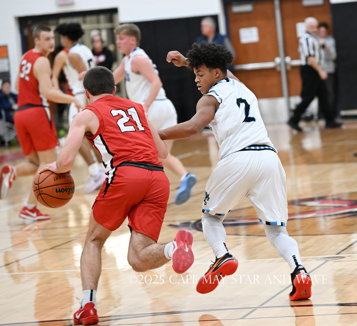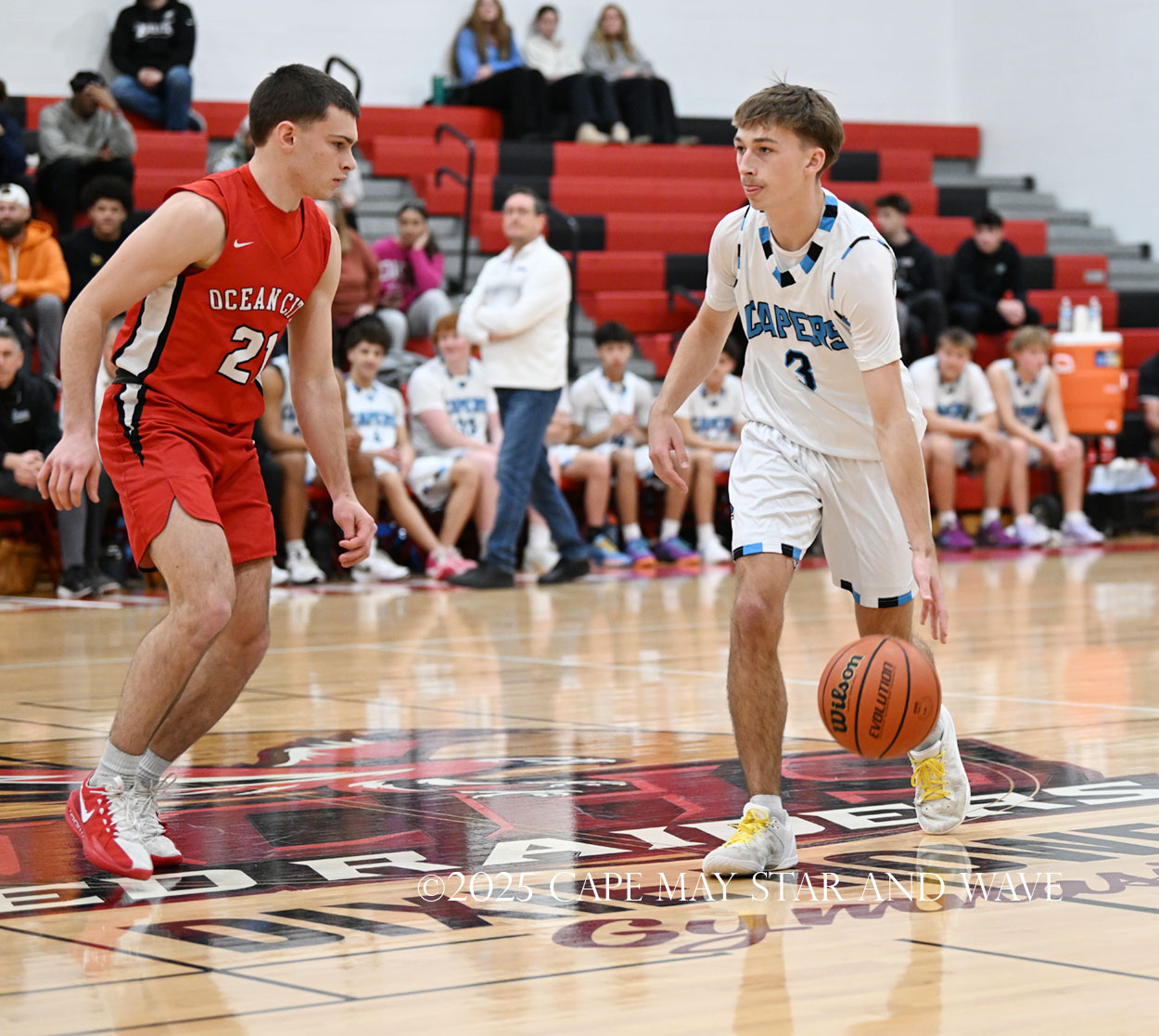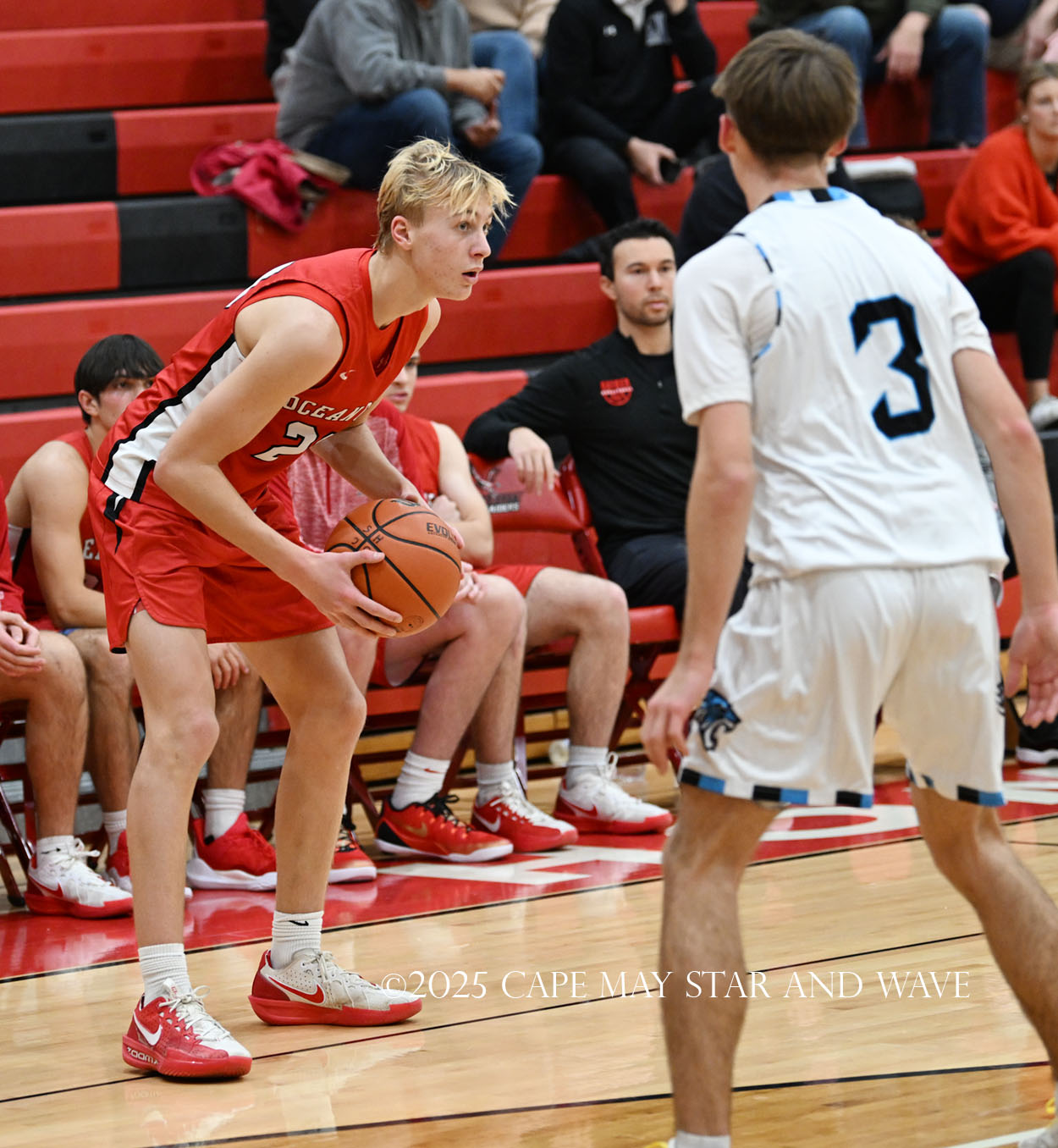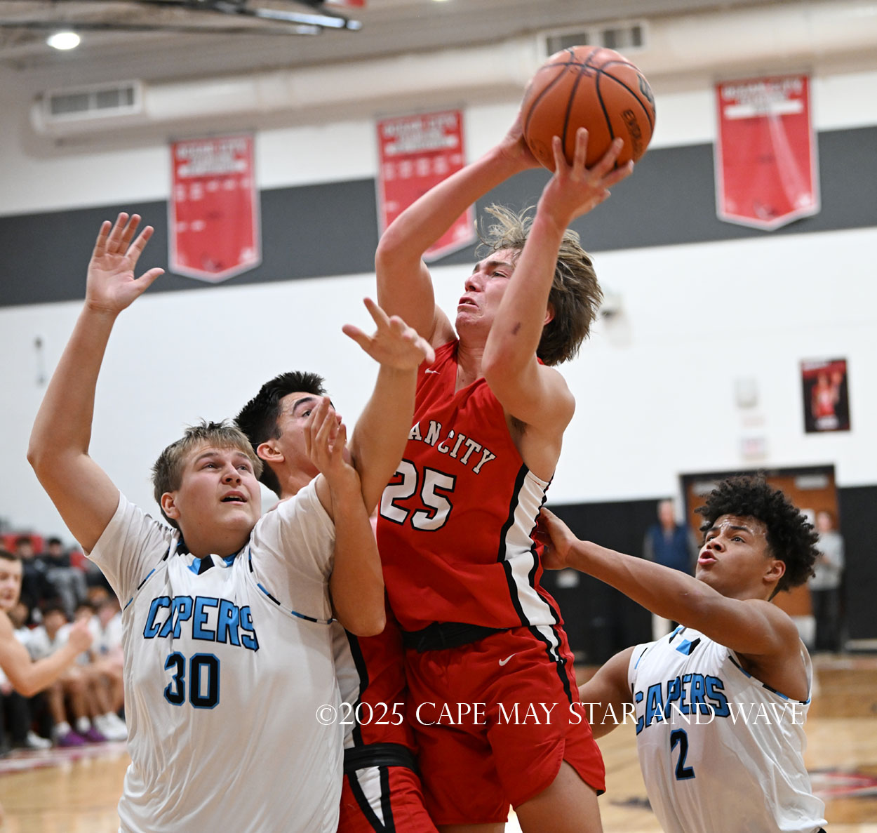 Cole Sederland and Gavin Ridgway both hit three big three-pointers to keep the pressure on Ocean City as the team’s primary long-range threats.