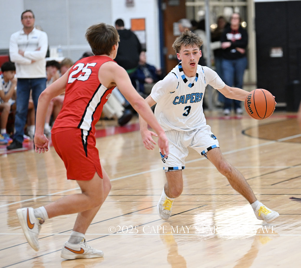 “To Lower Cape May’s credit, we are always fearful of them and how scrappy they are,” Bruno said. “Ty Bonner has improved by 100 percent and has turned into that senior leader that they need. The other guys follow right behind and produce. They lived by the three-pointers today with guys like Ridgway and every time I looked up, they were gaining on us despite us making shots.”
