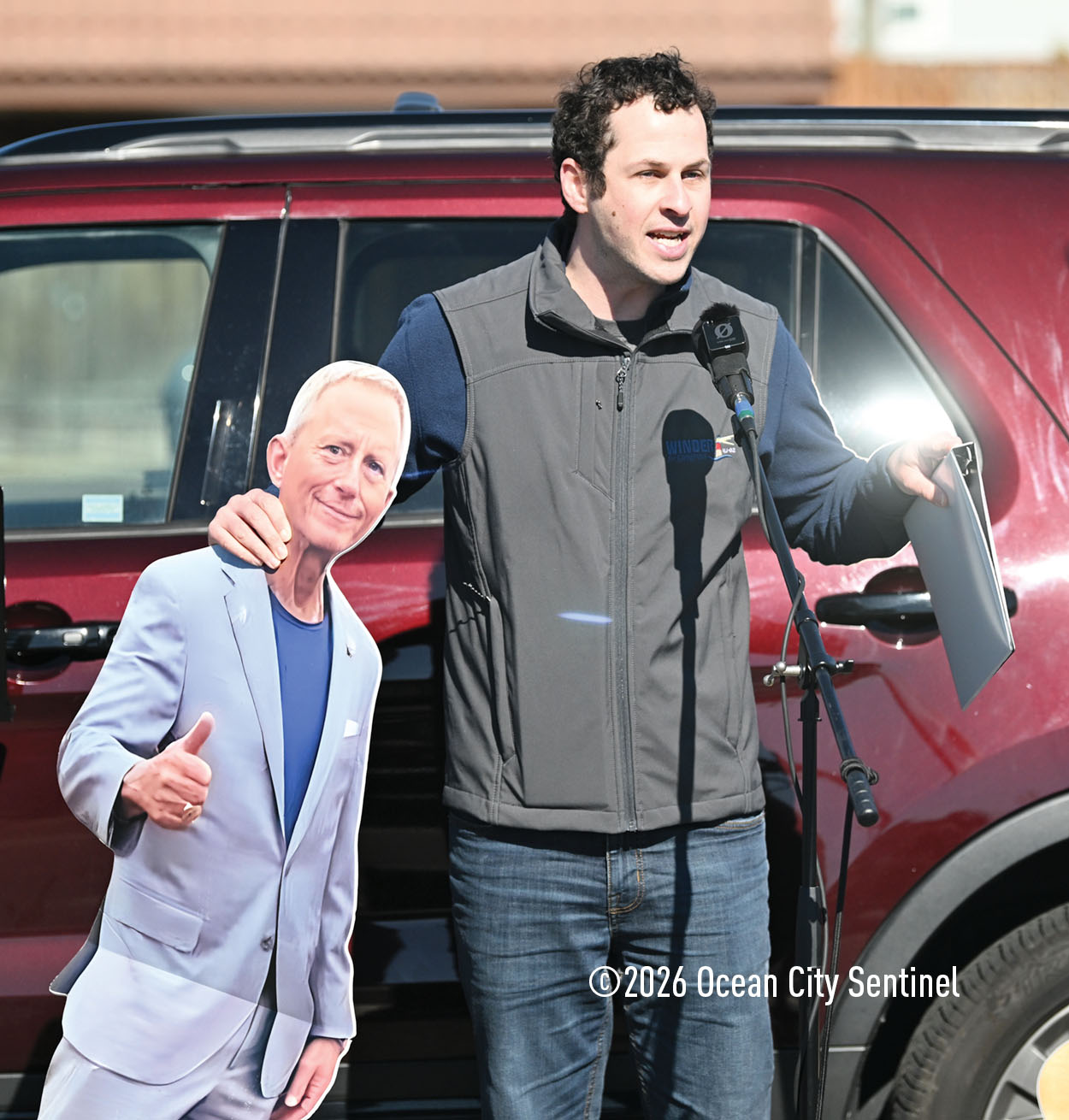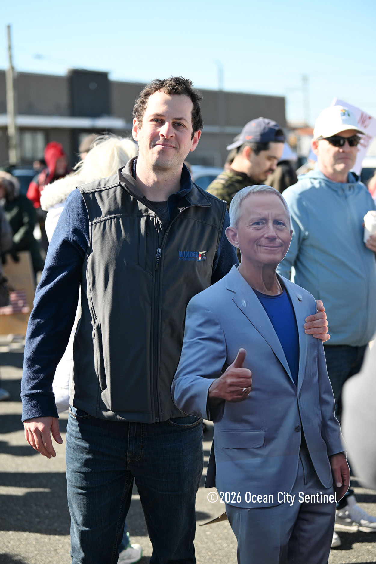 Van Drew wasn’t at the rally, at least in person, but Winder carried an almost-life-size cardboard cutout of the congressman and held it while he spoke to the crowd.