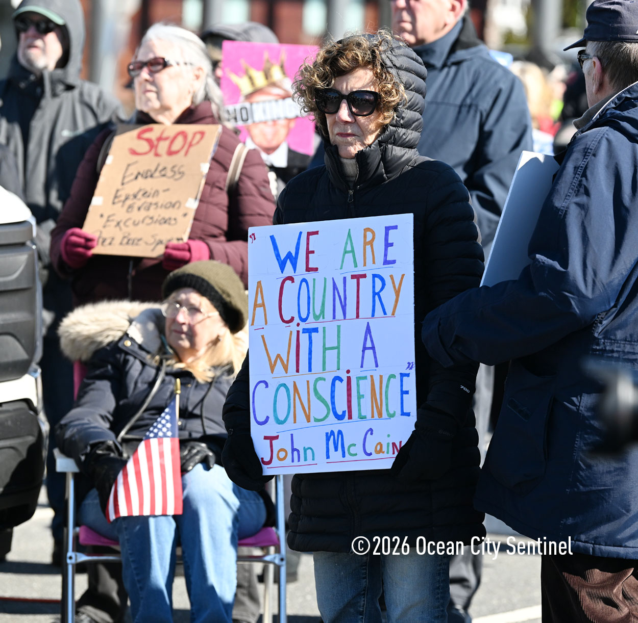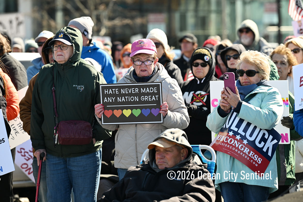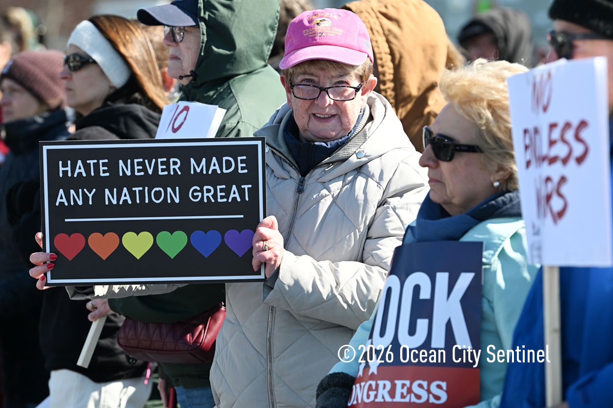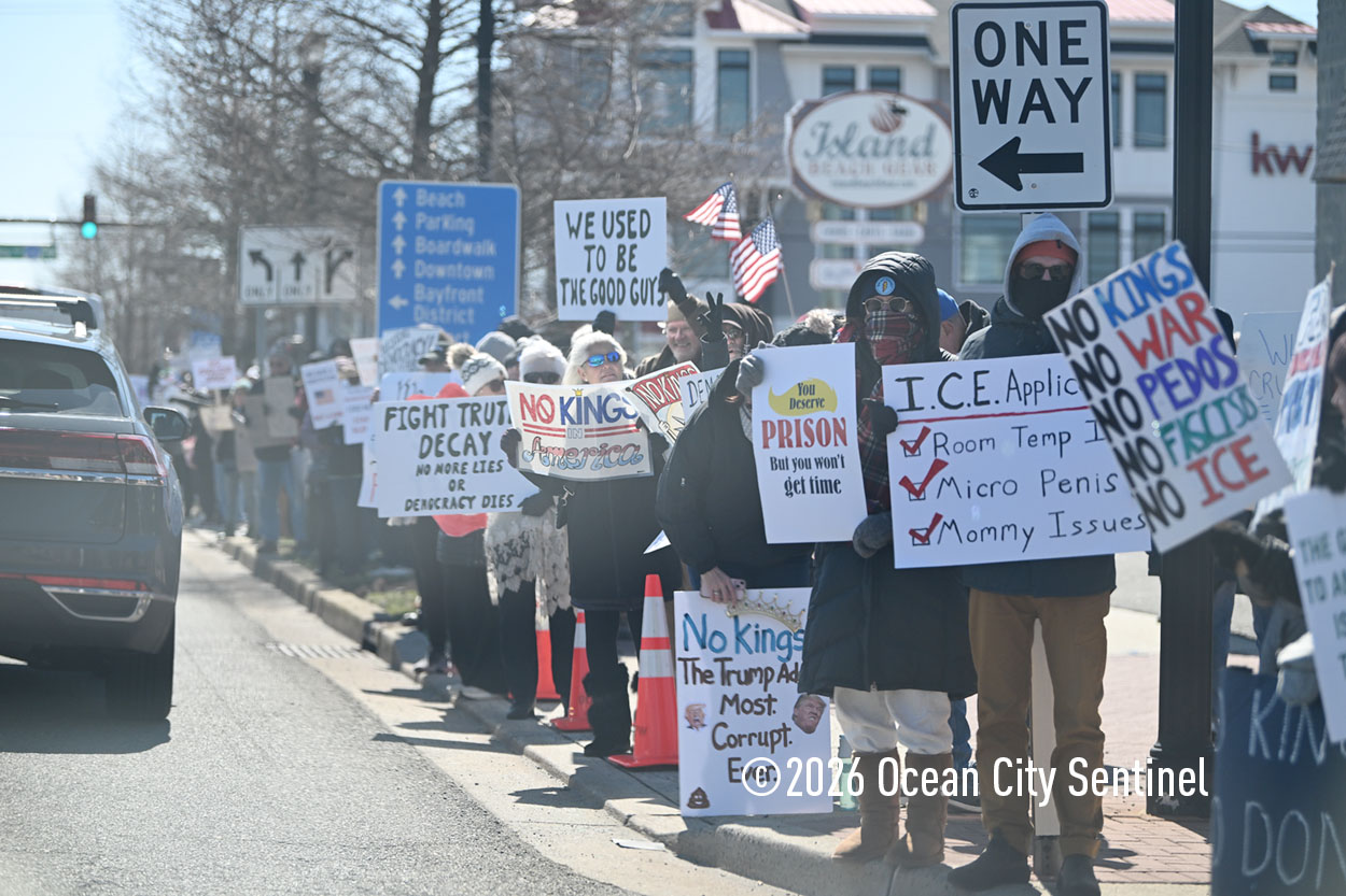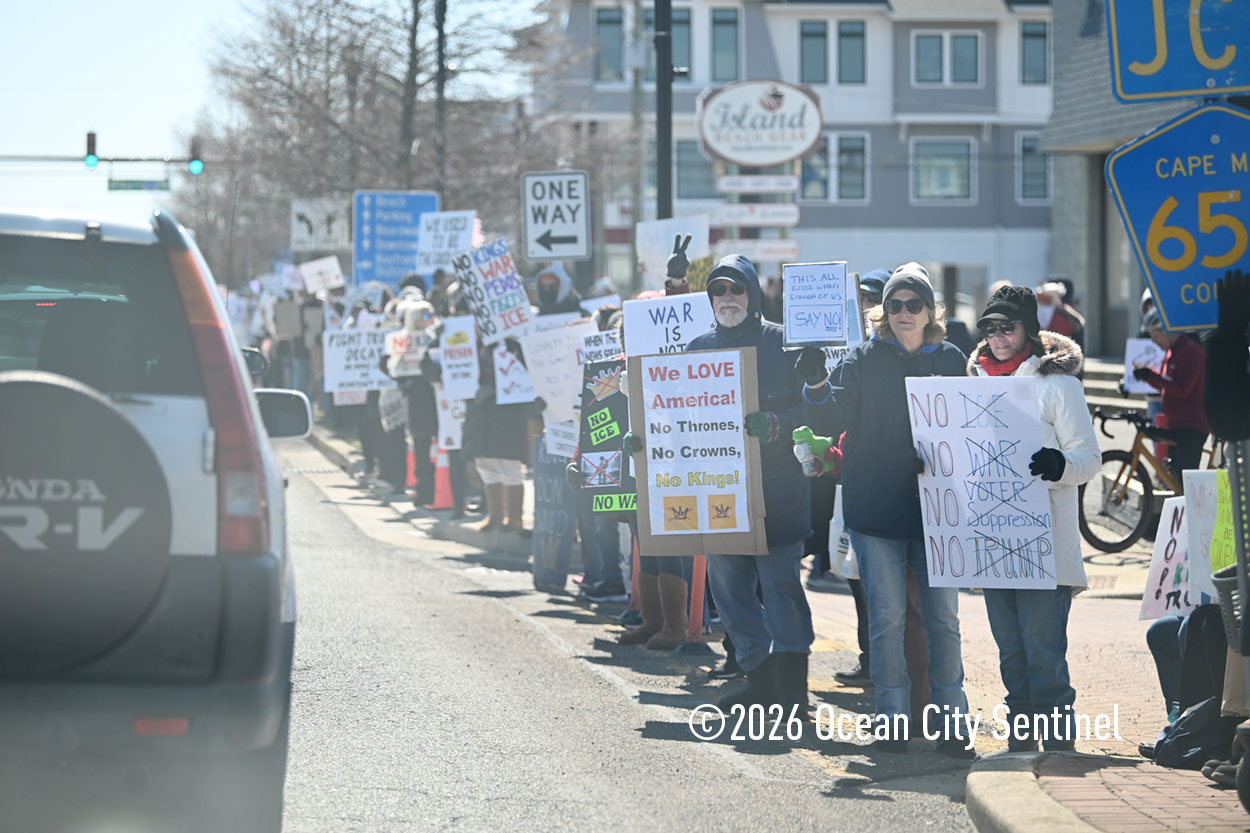 OCEAN CITY — The crowd at Saturday’s No Kings Shorewide Resistance Rally in Ocean City wasn’t as big as organizers hoped, but the anti-Trump and anti-war passions on display were as fervent as during past rallies.