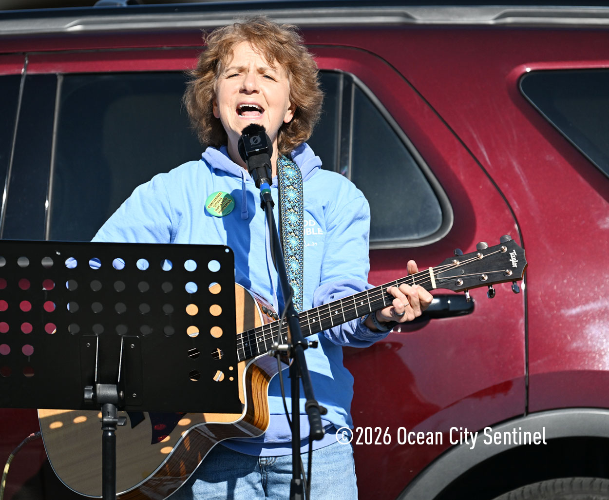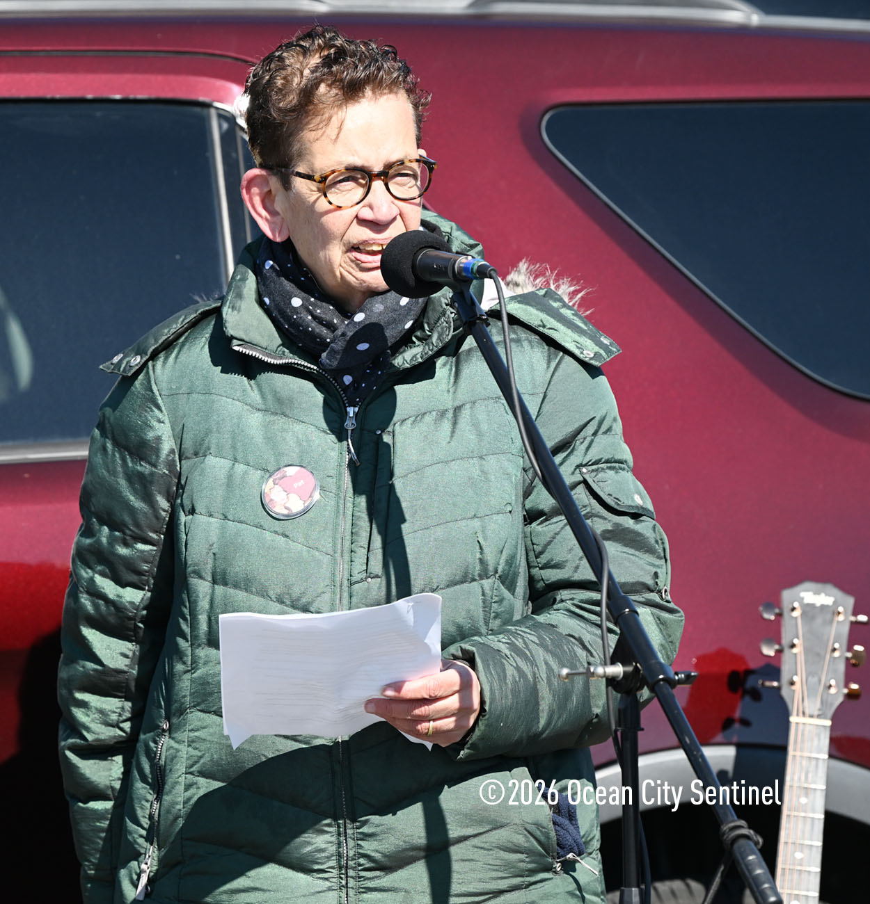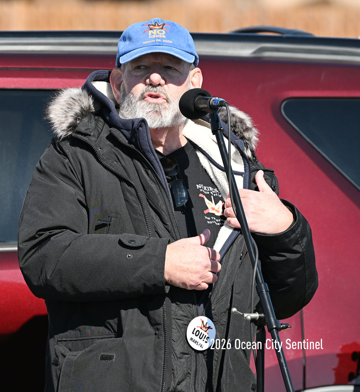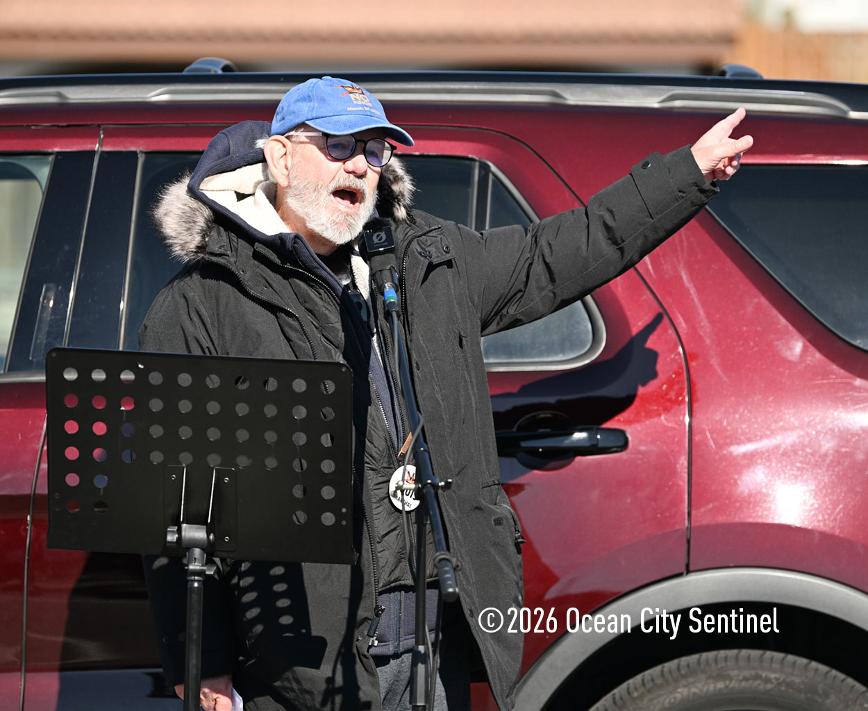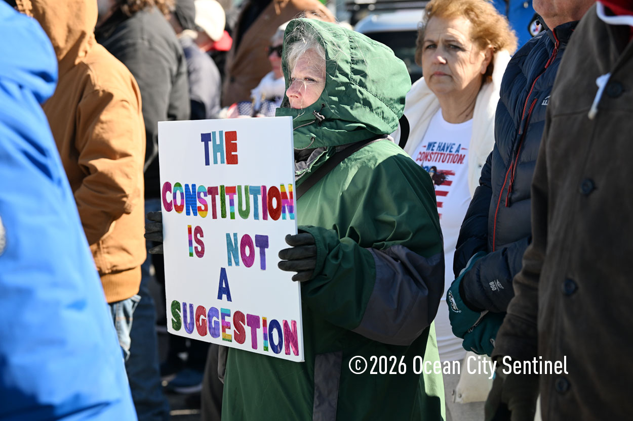 Louis Stricoff of Indivisible Ocean City, the organizer of the rallies and protests in the resort over the past year, emphasized the peaceful nature of the gathering. In a spiritual opening prayer, he said, “I pray for our country. I pray for all of you, who are the patriots, the true patriots of our country right now, We are doing unbelievable work. We’re having a lot of success.”