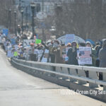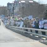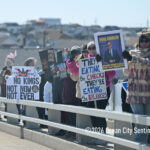 After the speeches, the protesters lined the sidewalk along Ninth Street and the walkway along the Route 52 causeway to wave signs and seek support in the form of honking horns from passing motorists.